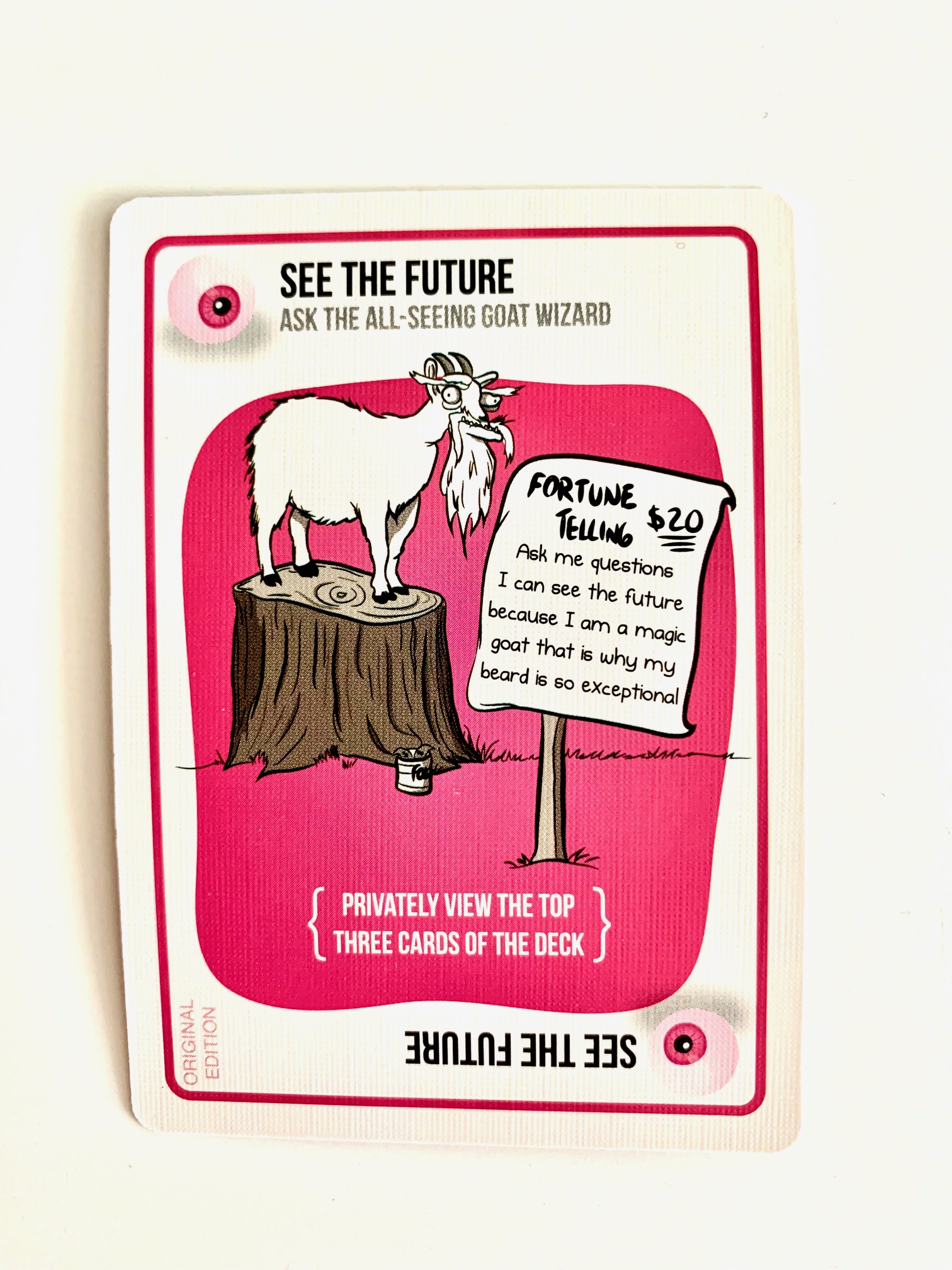 See the future Card – Sneak a peak at the top 3 cards from the draw Pile and put them back in the same order. Don’t show anyone else the cards.