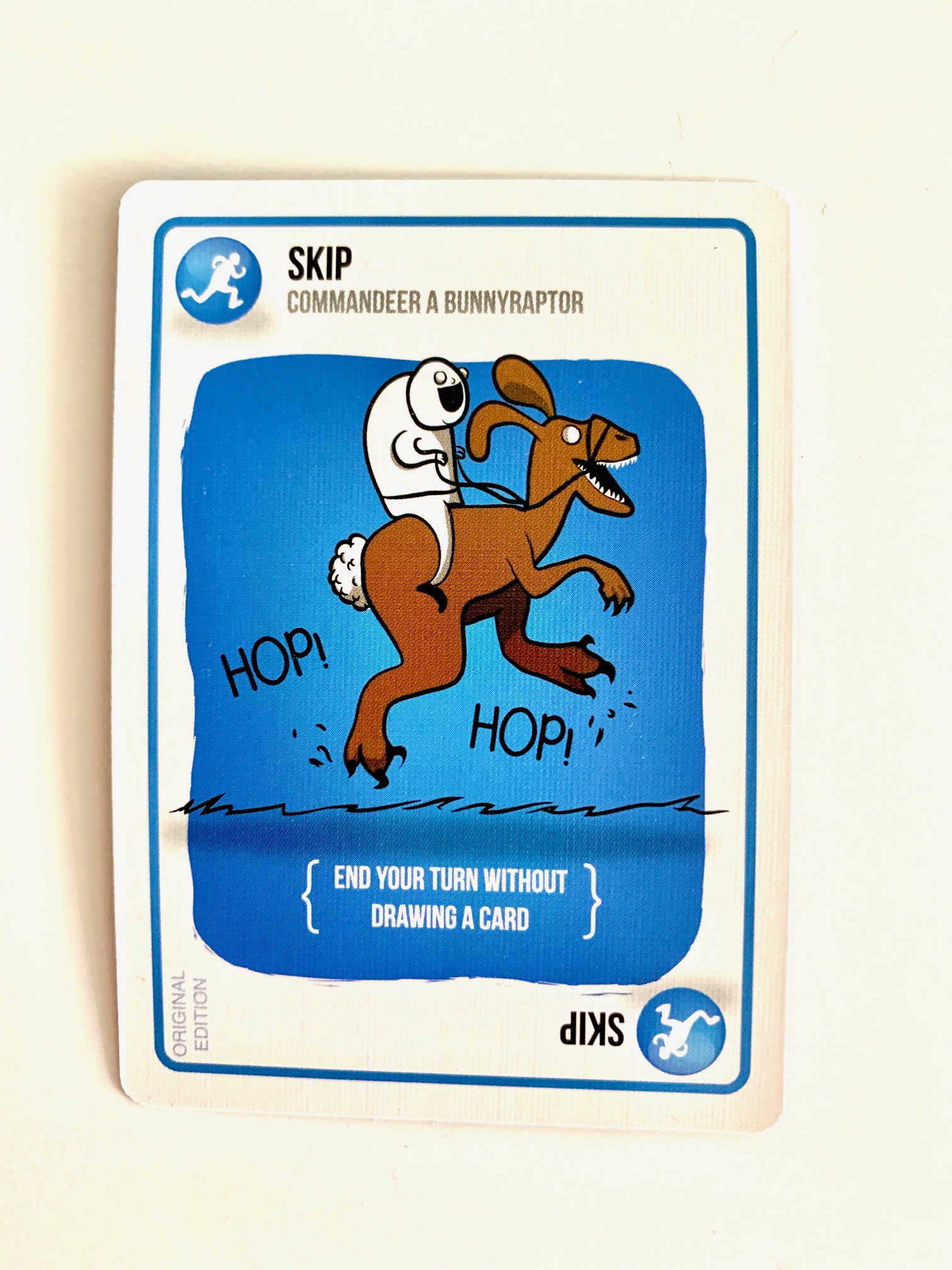 Skip Card – this ends your turn without drawing a card. if you use this while being attacked, it only ends one of your turn.