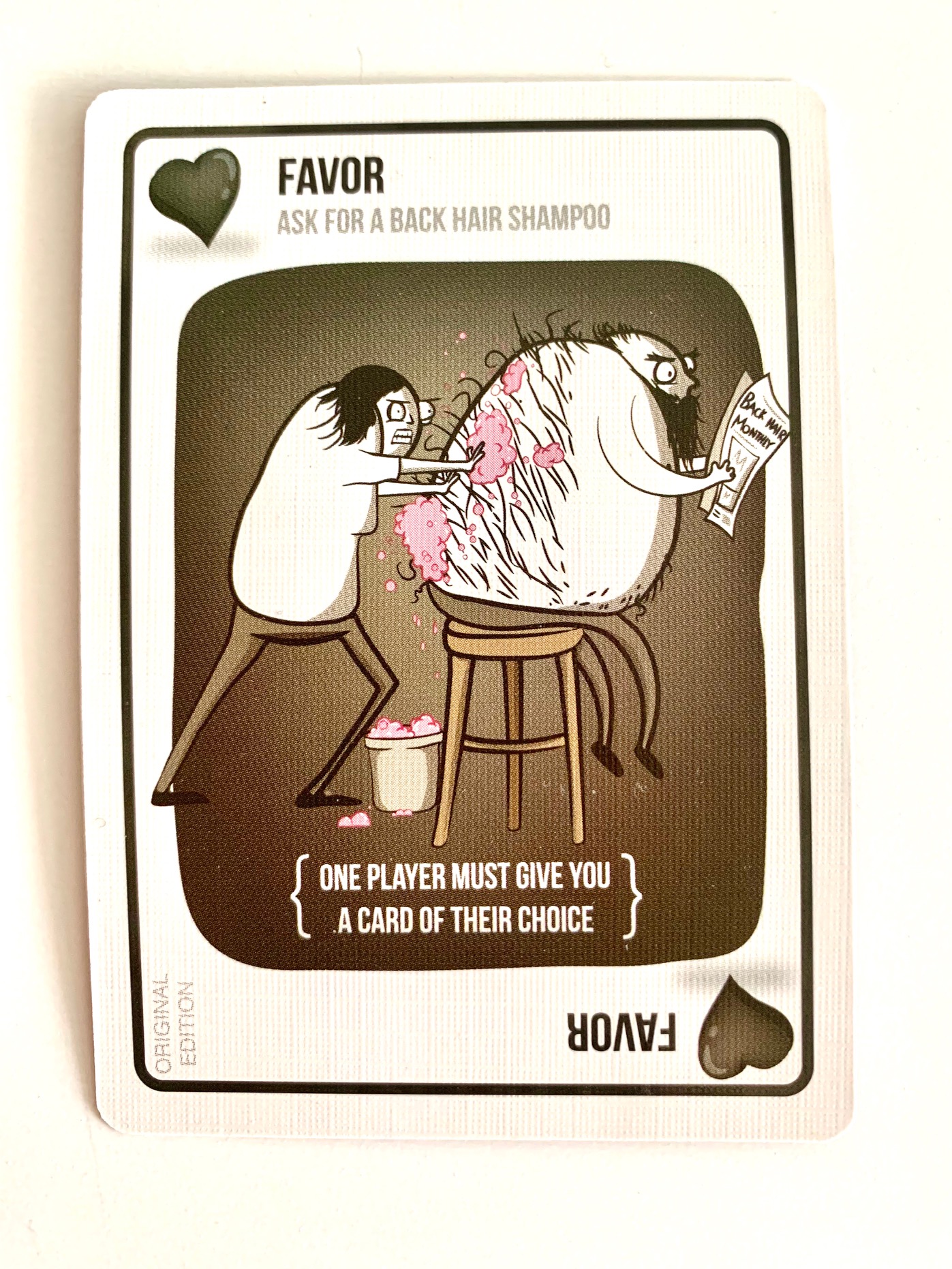 Nope Card – this can stop any action except an exploding kitten or a defuse card. You can also play a nope on another nope card as well. This can be played at any time even if its not your turn.