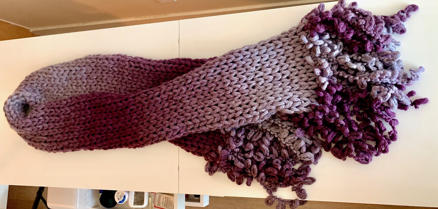 The scarf took only a few hours. I would consider this a gateway to knitting projects. It has a lot of potential for new knitters who need some confidence and it would be a great project for children. I think it could create a lot of interest in knitting as a hobby and I am looking forward to trying other projects and tutorials to see what else it can do. I would recommend it to any beginner.