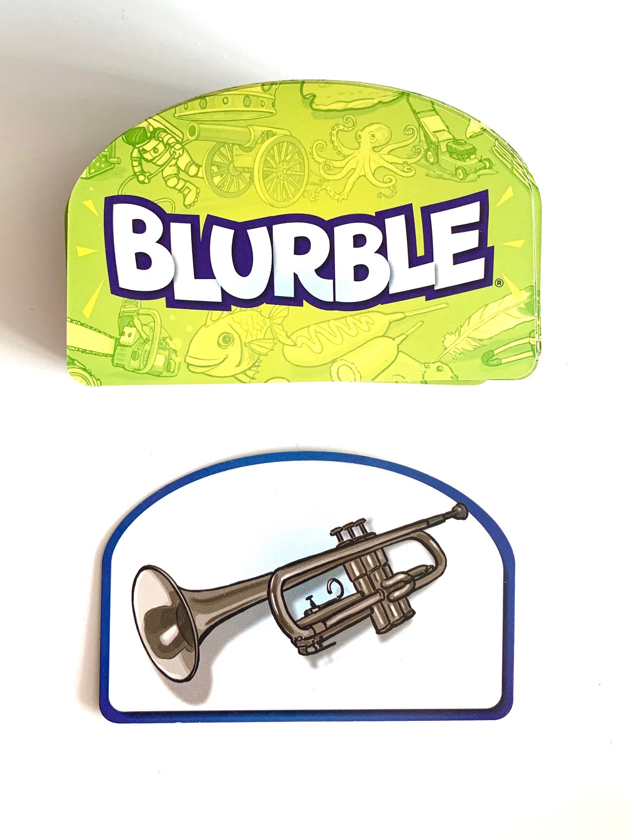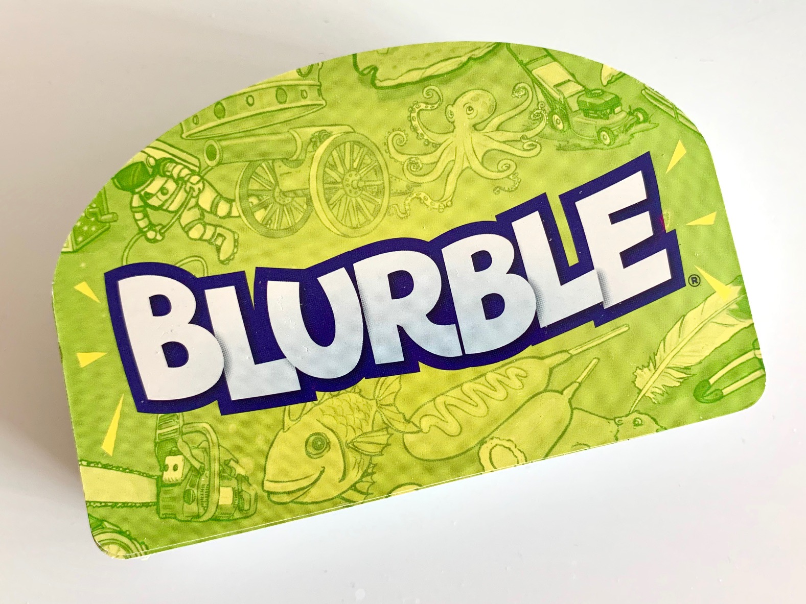 Let’s start with how to play, the “blurbler” places the stack between themselves and the player to their left. When the two players are ready a card is flipped over, the first person to say a word that starts with the same first letter as the picture on the card wins and gets to keep the card for a point.