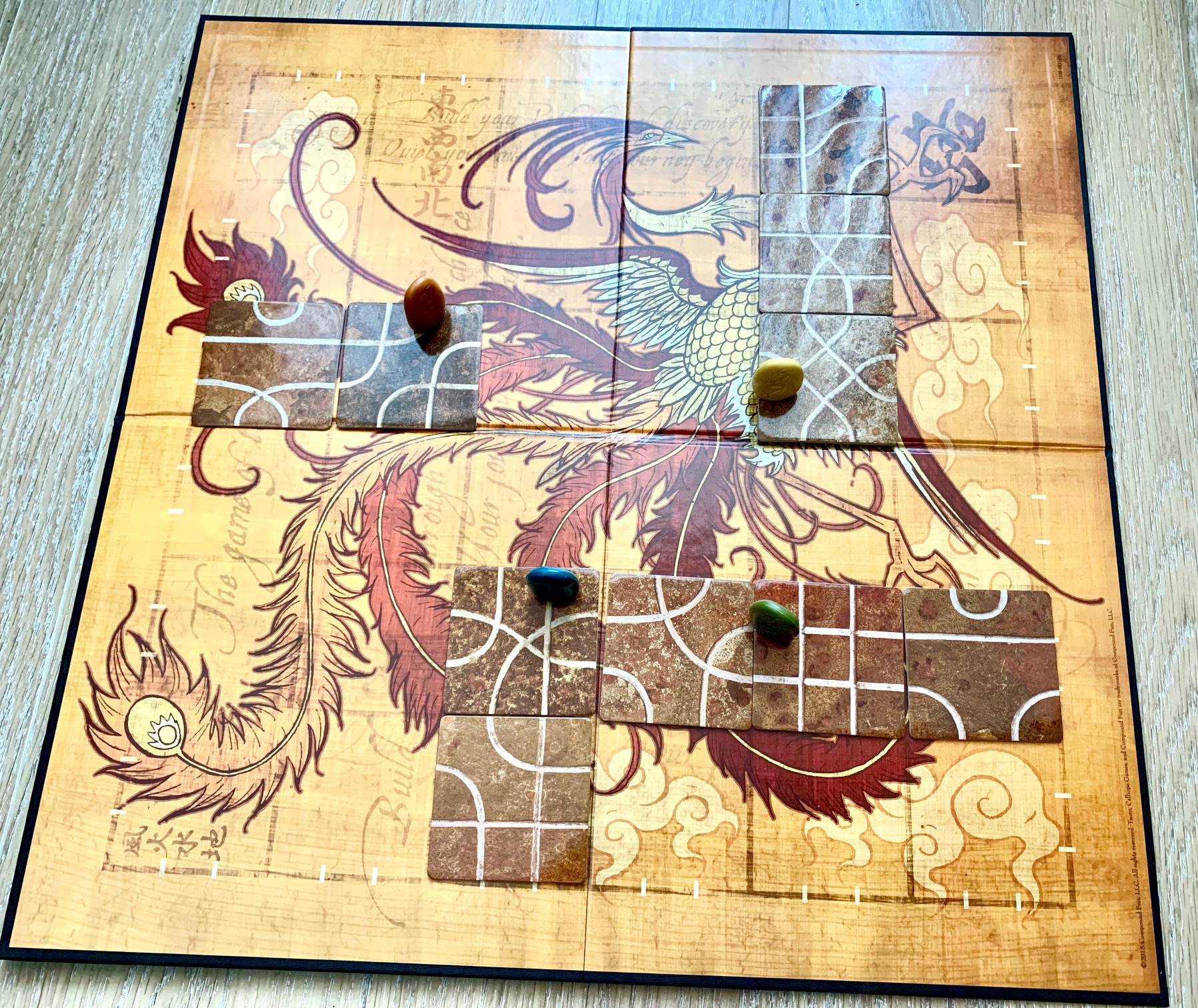 To play pick a spot on the outside of the board as your starting point. Place down a tile card next to your token, then move your token on that path. As soon as you are done draw a new tile.