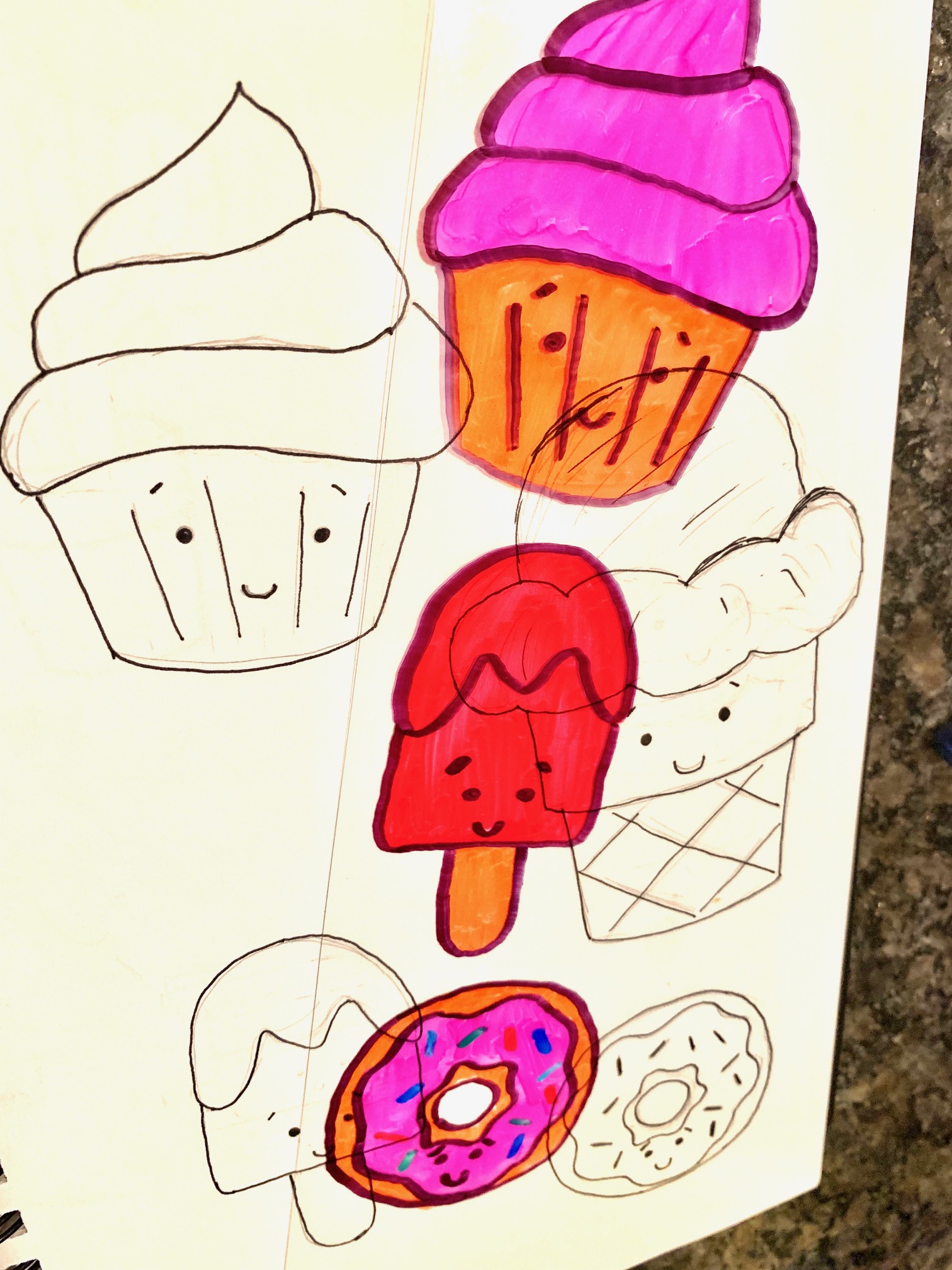 Preheat oven to 340 degrees, cut out your drawings and place them on a baking sheet, leave a lot of space between them on the wax paper. I don’t have a specific amount of baking time, I recommend watching through the oven window. If they come out of the oven too soon they will stayed curled. The pieces should be in long enough to curl up and then eventually flatten out again, once that happens, leave for another 10 seconds and then remove. If they are still a bit curled you can pat them down with an oven mitt or pan.
