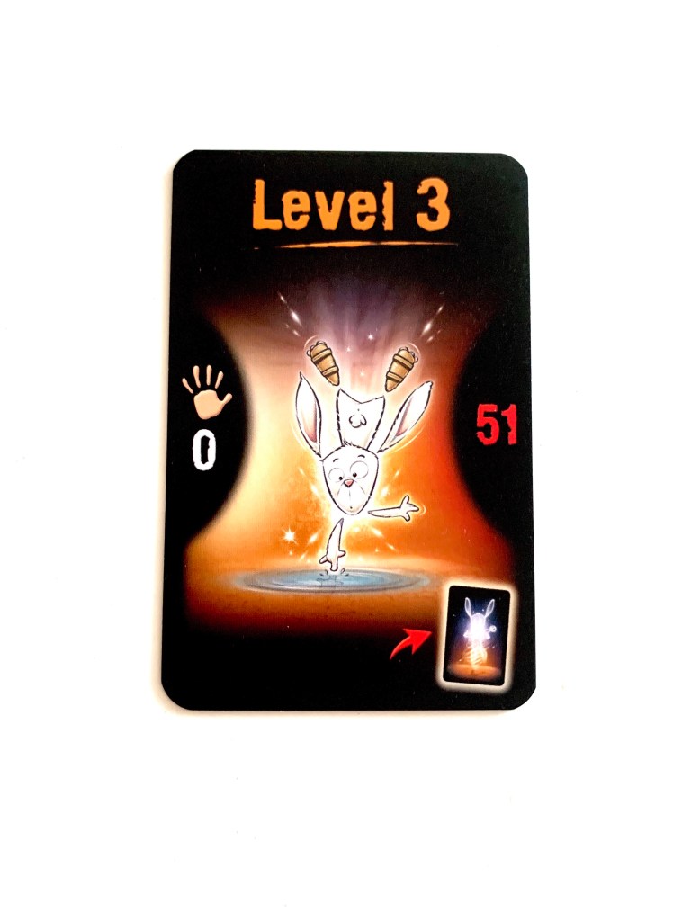 When all cards are played in the right order, you’ve won the round and can go to the next level. If you made a mistake along the way the team loses a life(one of the rabbit cards). If you lose all your lives you’ve lost the game. Once you pass all the levels for the appropriate amount of people, your mind reading skills are at their best and you’ve won the game.