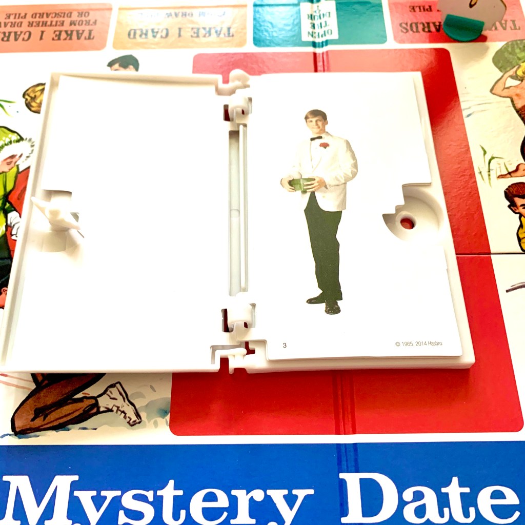Mystery Date came out in 1965, this tin version matches the original artwork. This game was for young girls ages 6 to 14 and could be played by 2 to 4 players. To get in the feel for this please watch this commercial from the 1960s.