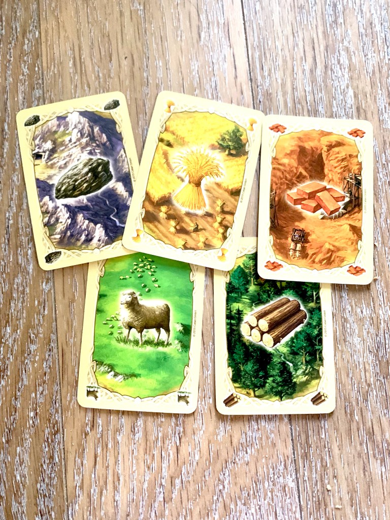 The game is played over rounds. On a players turn they will roll the dice gain resources, trade and construct buildings. Once the player has rolled the dice any players that have a building next to any tiles matching what was rolled gain one of that resource for each settlement and two for each city.