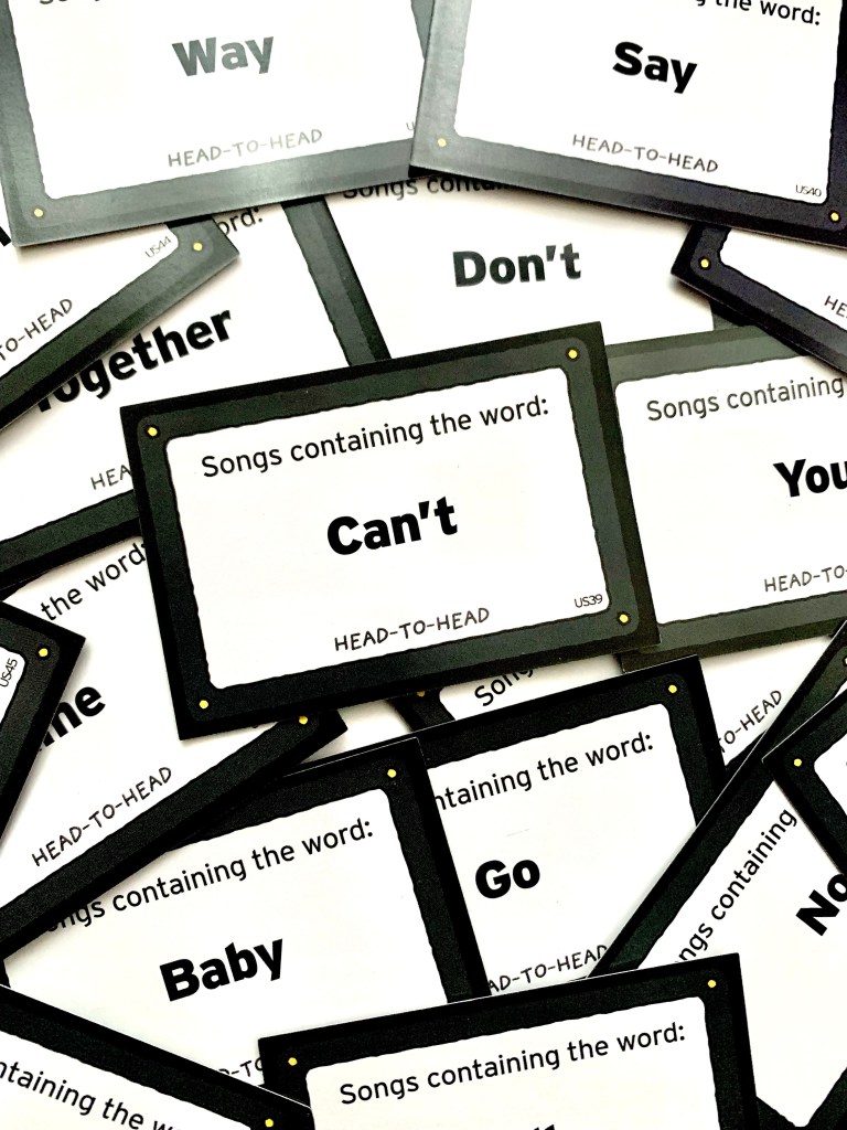 In the head to head round, turn over the head to head card to see the category. The first of the two players with an answer shouts it out and hits the buzzer. The other player now has 15 seconds to come up with a different answer and hit the buzzer. This continues until one player runs out of time.