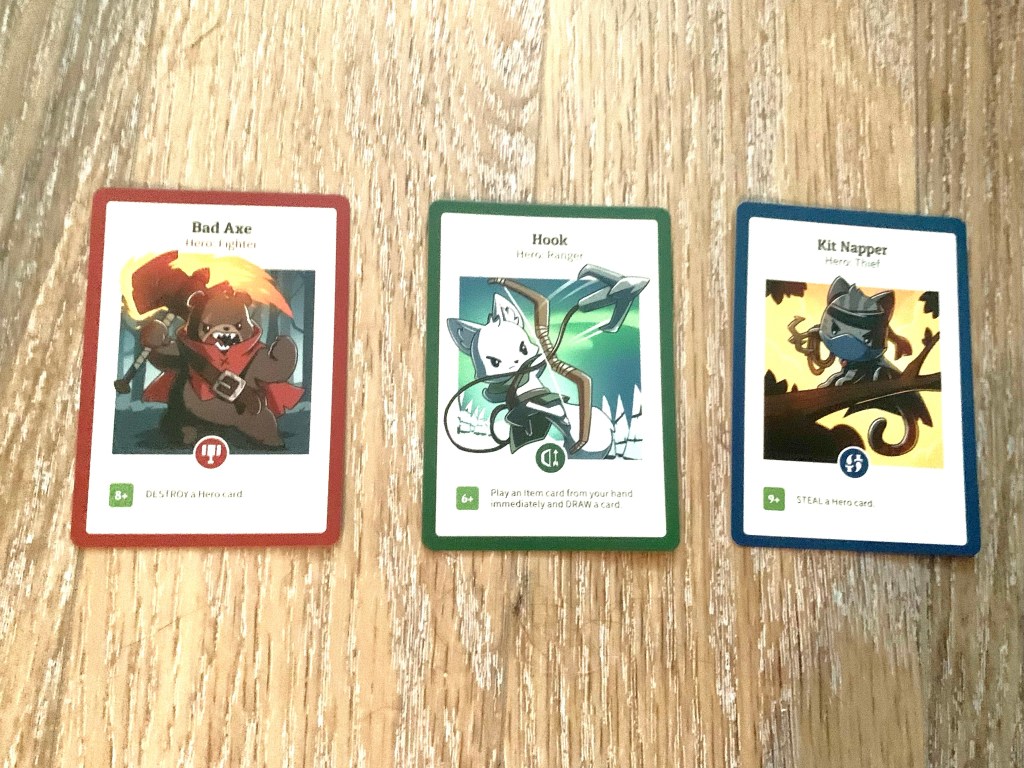One of the ways to win is to have a full party of the 6 different classes. Your Party Leader will have a class listing and you will need to have to play the other 5 with your hero cards. The class listing is represented by a coloured symbol on the card. Along with the class symbol a hero card will also have an effect. Each of these cards will have a roll requirement and you will need to roll equal or higher to use that effect.
