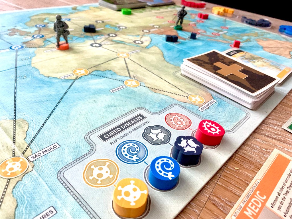 This is a classic when it comes to a cooperative games. You are working together to come up with a strategy to handle these outbreaks but also how you travel the board. Players have to be on the same page to make this work.