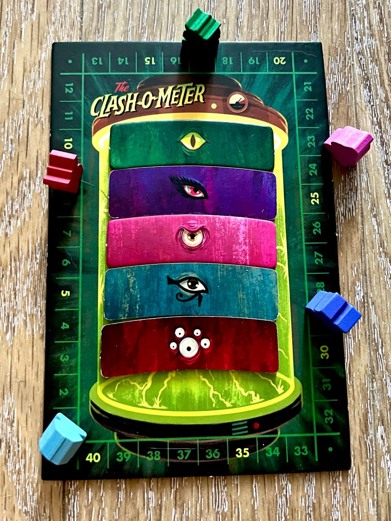 The Clash-O-Meter will be placed between players. The first player will place their player marker at the top of the Clash-O-Meter. Moving clockwise each player places their in order below. All creeples will be placed on the zero spot.