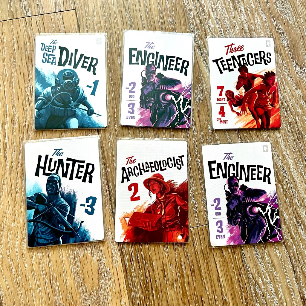 Campy Creatures is a game that’s been on my buy list for a while. It’s hard not to fall in love with this one. The artwork is unbelievable. I love everything about the look of this game, the cards are stunning and the characters are classic. The monster theme comes across really well, it’s definitely a game to pull out every halloween. The three rounds are long enough, I don’t think you’d want anything longer. The game is fairly easy to explain and quick to start playing. There’s a bit of strategy for when you play creatures but there’s also a bit of luck with what mortals will show up and the other creatures played. Overall it’s a fairly quick and easy game that will appeal to all type of gamers.