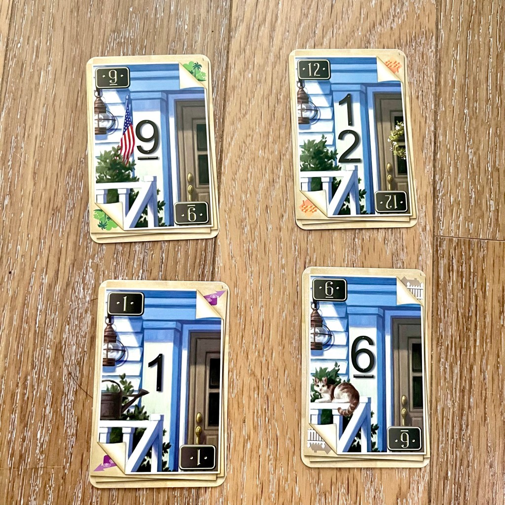 Once house numbers and effects are written in, cards are turned over creating a new combination.