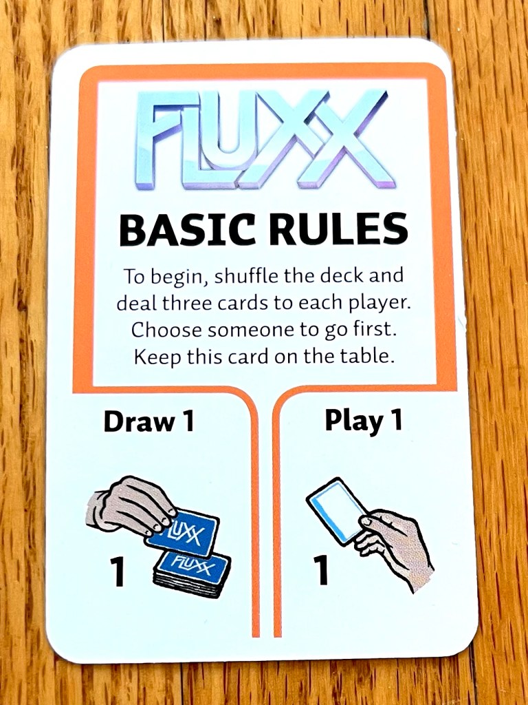Fluxx starts with a couple rules. As the game goes on more rules and win conditions will be added and changed.