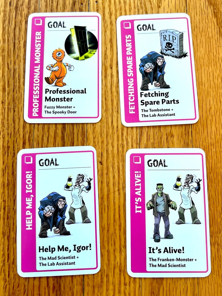 Goal Cards – Play a goal card by placing it face up in the centre of the table. A new goal card will replace the old one. This is the win condition for the game.